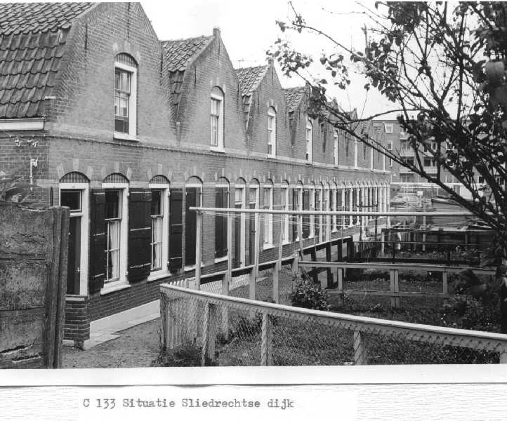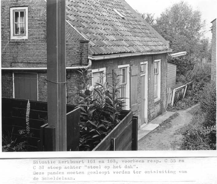 Woningen C 55 en C 57 in stoep achter Gort meubelen. Huis met de Stoel op het Dak.Foto is gemaakt vanaf de achterplaats van Kerkbuurt 165, rechts is nog net een stukje van de kerk te zien Onze roeping getrouw.