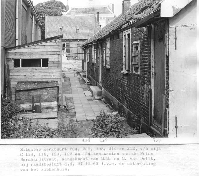 Woningen C 116 t/m 124 ten westen van de vroegere Prins Bernhardstraat, gesloopt voor de realisatie van het ziekenhuis.