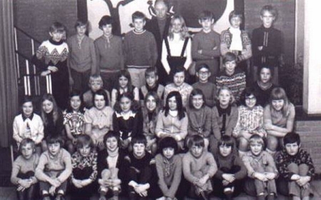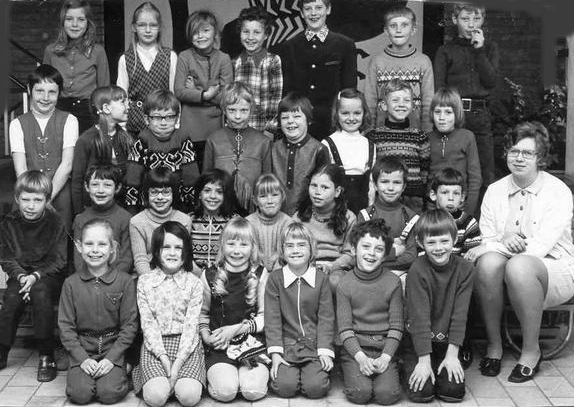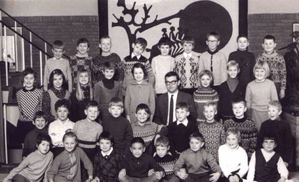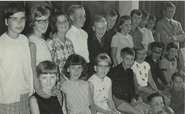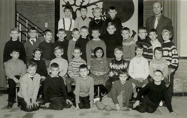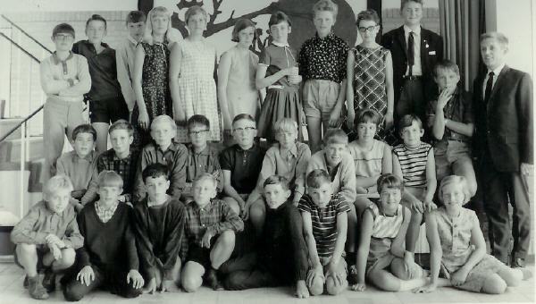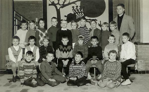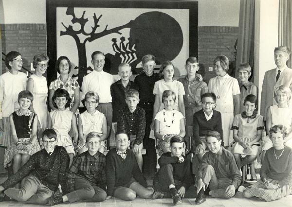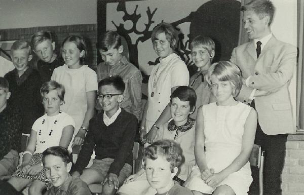 Boven: Wim Lavooij, Ad v.d. Graaf, Jan v.d. Berg .Greta Besemer, Cora Leeuwenstein, Jeanet Batenburg, Yvonne Struyk, Krijn Boer., Henny Boer, Henk Vos en meester Verweij. Midden Ad Korsmit, Jan Lanser, Ab Roskam, Guus Beguin, Andre Groeneveld