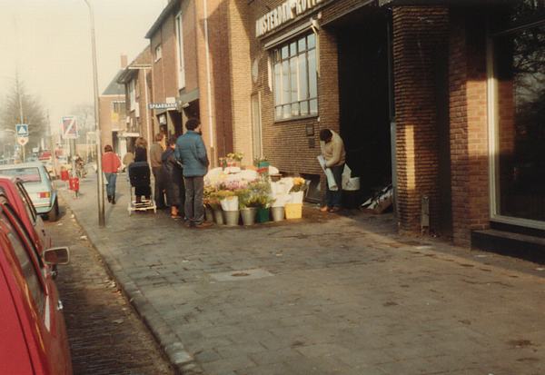 Bloemenstalletje bij de Amsterdam-Rotterdambank aan de Stationsweg