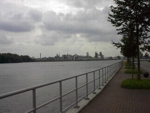 Boulevard met op achtergrond chemischbedrijf van Dupont