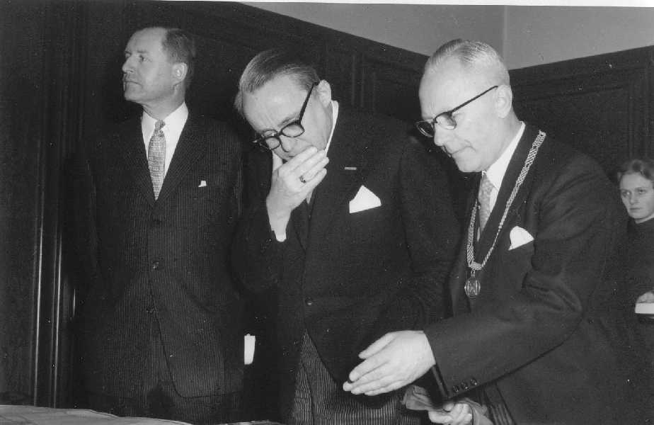 Afscheid burgemeester Feitsma in 1960 tijdens bezoek aan Baggermuseum