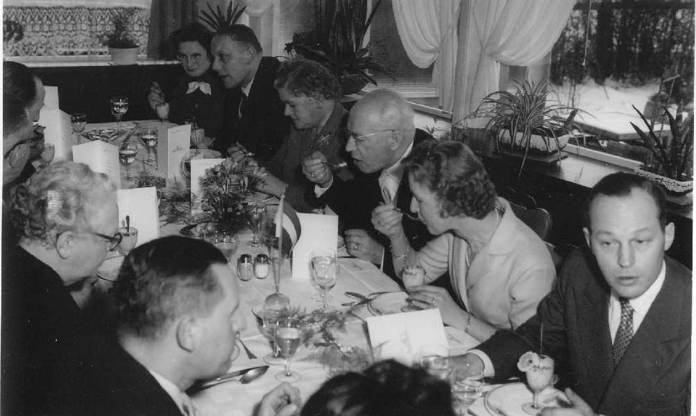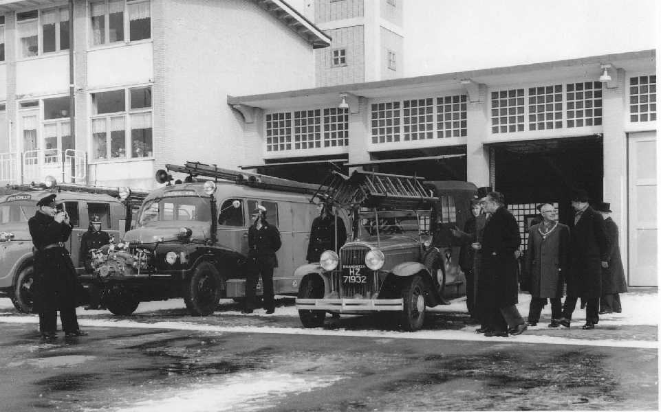 Afscheid burgemeester Feitsma in 1960. Uiterst links reserveagent Piet Boer. Vijfde van links agent Tieleman.