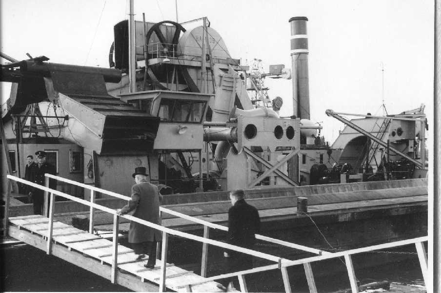 Afscheid burgemeester Feitsma tijdens bezoek aan baggermolen van de HAM