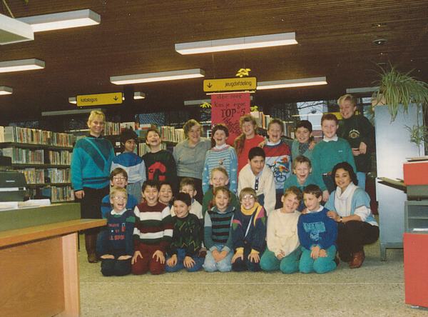Schoolklas Jan Ligthartschool in de bibliotheek in de Bonkelaar met juf Van Steenis