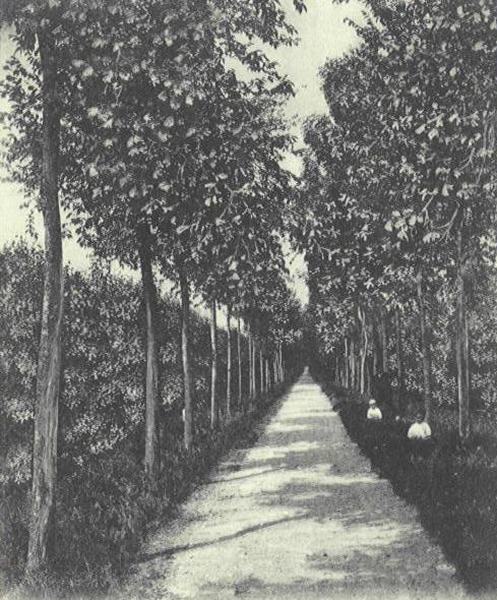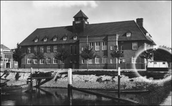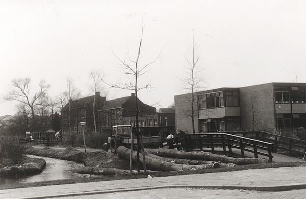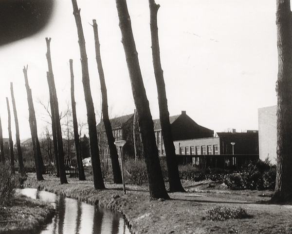 Boslaan met Huishoudschool en op voorgrond de Erasmusmavo