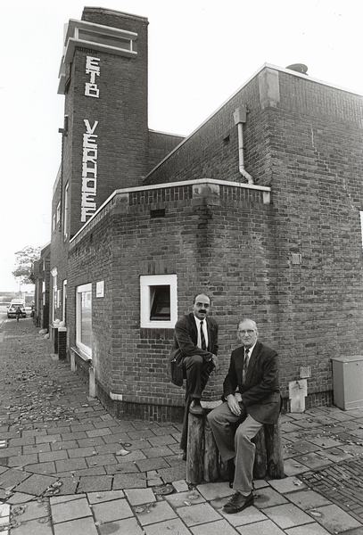 Latere eigenaar van Verhoef-electro Ad van Willigen (r) met een medewerker de heer Verheij.
