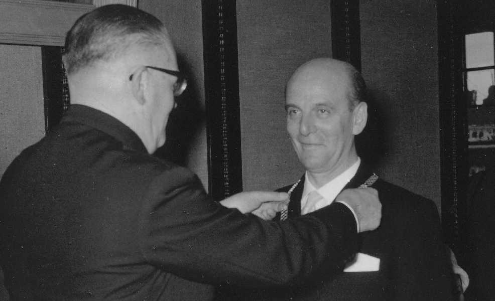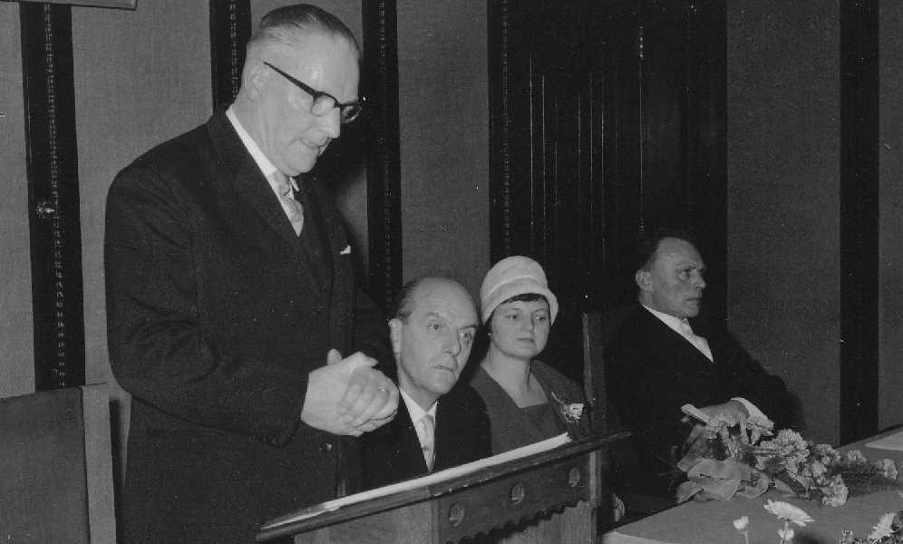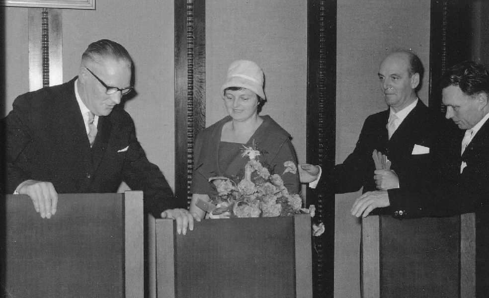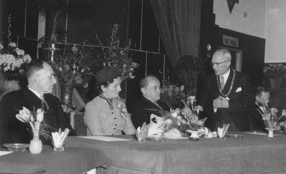 Burgemeeaster Van Hofwegen en echtgenote in de raadszaal