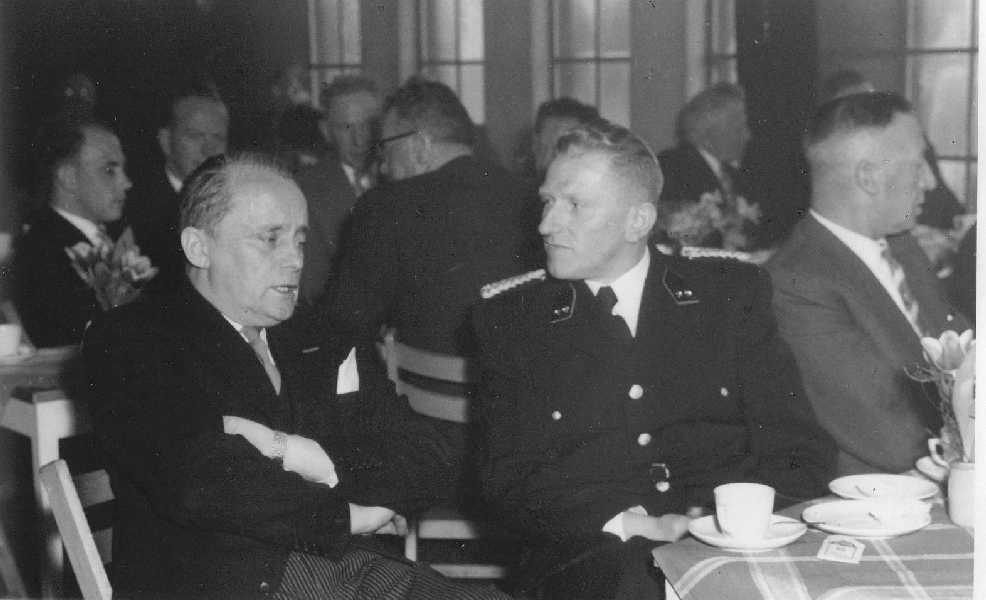 Inspecteur van politie Bolhuis bij Feitsma.Het afgebeelde politieuniform is van de periode voor 1960.