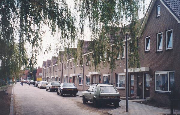 Frans Halsstraat. Ook hier alle bewoners terug en allemaal een nieuwhuisnummer, omdat er minder huizen werden terug gebouwd. V.l.n.r. Bert Timmer, Bert Boogaard, Peter Helmich, Arie van Ham en Jan Blokland.