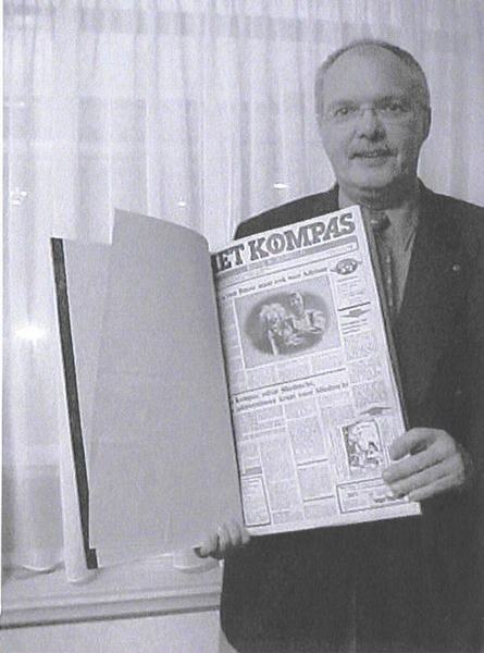 Fred Stuij toont Het Kompas. Deze boeken zijn in het bezit van de Hist. Ver. Sliedrecht