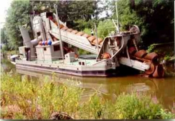 Baggermolen Friesland liggend in het Kleindiep achter het Baggermuseum