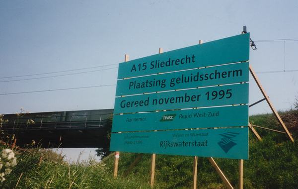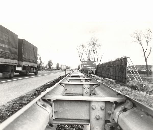 Geluidsscherm langs rijksweg A15, gemaakt van wilgentenen.