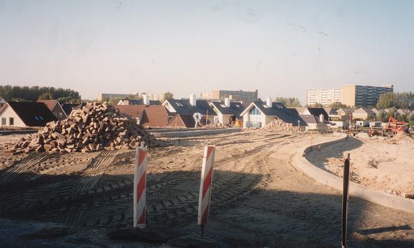 Woningbouw in de wijk De Grienden. Oprit Thorbeckelaan.