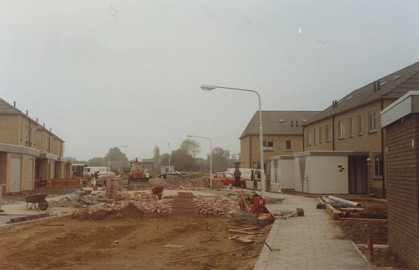 Woningbouw in de wijk De Grienden. Aanleg bestrating.