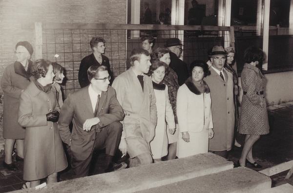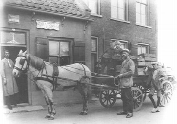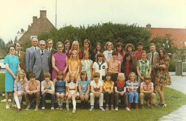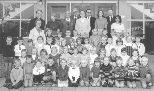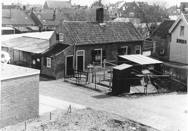 Op de achtergrond staat het schoolhuis van v.h. Hakkenesseschool, later J.C. Lanser. Rechts witte gebouw Van der Leun, schildersbedrijf. Huisje met aanbouw bewoond door fam. Nederlof, daarnaast fam. Bot.
