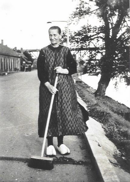 Straatje vegen nabij de spoorbrug.Zij heet Anna Bogaard en was getrouwd met Klaas Hinke, de kleermaker en kapper van Sliedrecht over wie nogal wat anekdotes de ronde doen.