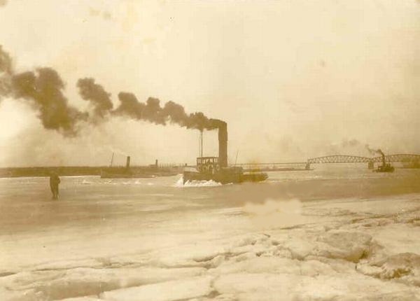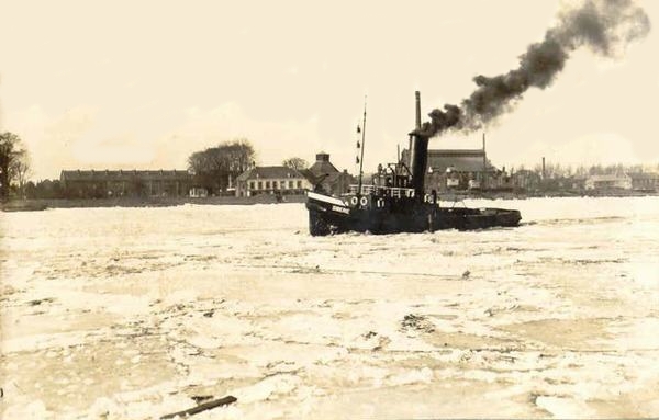 IJsbreker aan het werk in de Sliedrechtse haven.