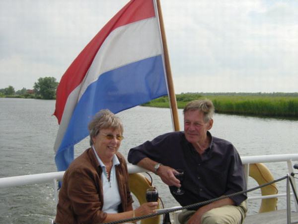 Jo Groenewegen en zijn vrouw Emmy tijdens een bootreisje met de Historische Vereniging