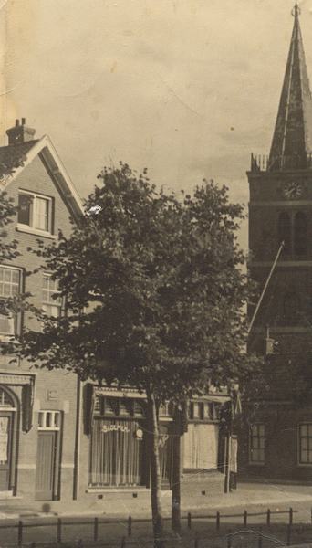 De Kerkstraat met slagerij Bakker en de kerktoren