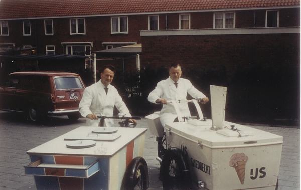 De gebroeders Leen (rechts) en Jo (links) Borsje op de ijscokar