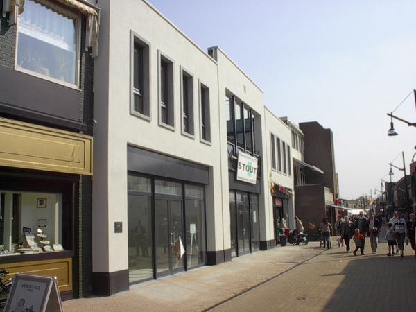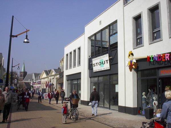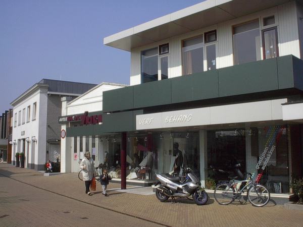 Kerkbuurt met pand van Klein kleding en De Vries verfwinkel