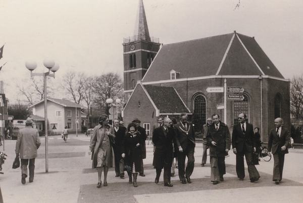 Oud burgemeester Hendriks wandelt met een gezelschap door de Kerkbuurt
