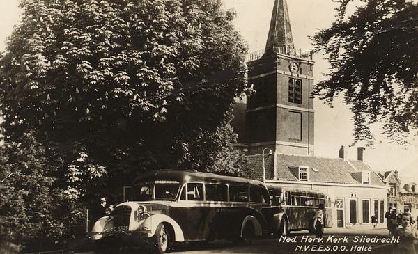 Nederlands Hervormde Kerk met autobus van de ESSO