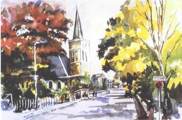 Aquarel omgeving Grote of Nederlands Hervormde Kerkl