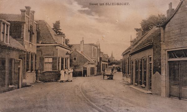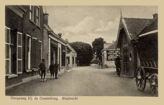 Kerkbuurt bij de Oosterbrugstraat met koetshuis en winkel Ravestijn