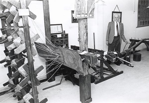 Touwslager Jan de Keizer bij de touwbaan in het Sliedrechts Museum