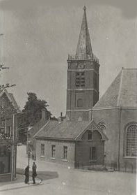 Kerkbuurt nabij boekwinkel De Waard met nog de oprit Frans Halsstraat