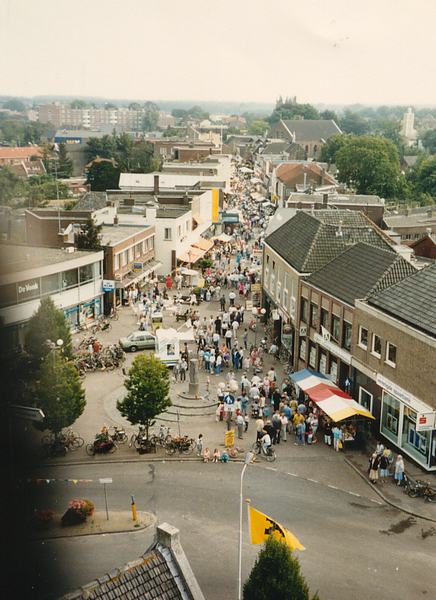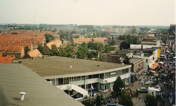 Kerkbuurt vanaf de kerktoren tijdens braderie