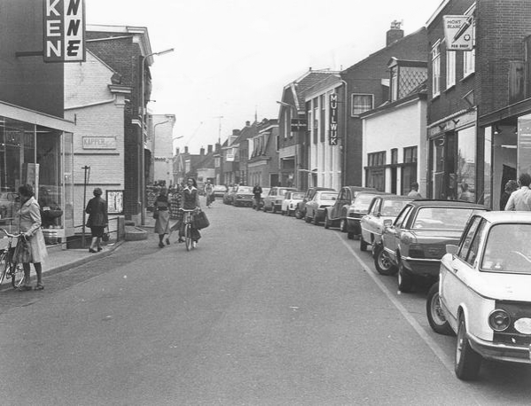 Kerkbuurt ter hoogte van boekwinkel Van Wijngaarden en kapper Aart Nederlof