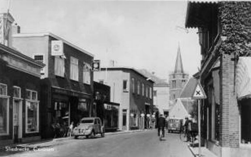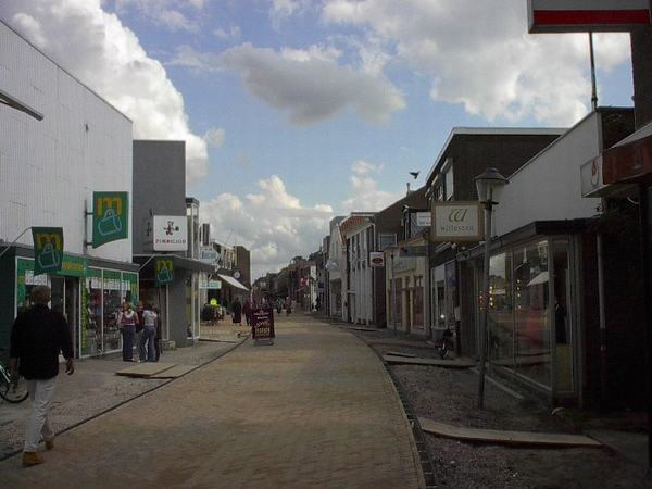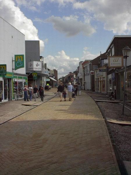 Kerkbuurt ter hoogte van boekwinkel Van Wijngaarden en Meijer textiel