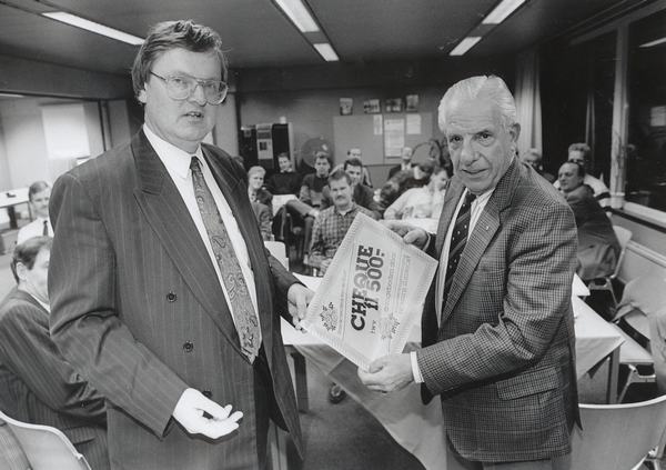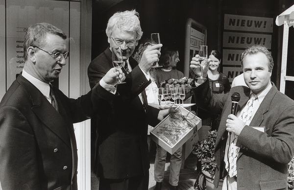 Wethouder Remco van de Ven en burgemeester Kleywegt proosten