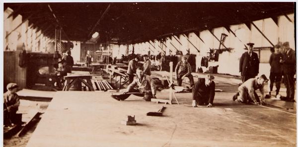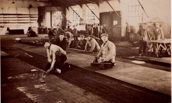 Foto gemaakt op de vroegere scheepswerf De Klop aan de Industrieweg. De jonge man op de voorgrond is Arie Mostert