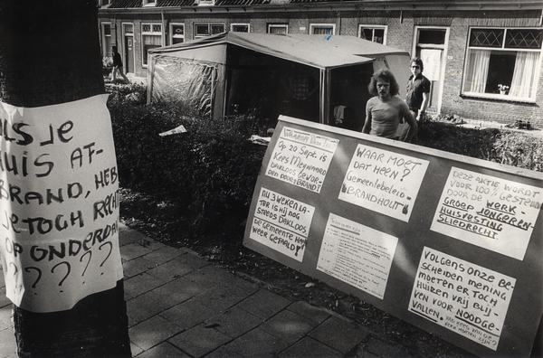 Protest bij de sloop van woningen nabij Ames aan de Stationsweg