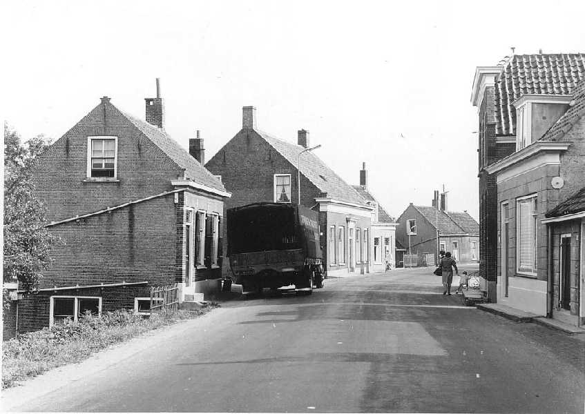 In het huis met die twee paaltjes er voor woonde boer Gerrit Vink. Daarnaast woonde Jan Bot . Vervolgens slager Van der Hee en het huis van Balt Alblas. De vrachtauto is waarschijnlijk van Aart van Andel.