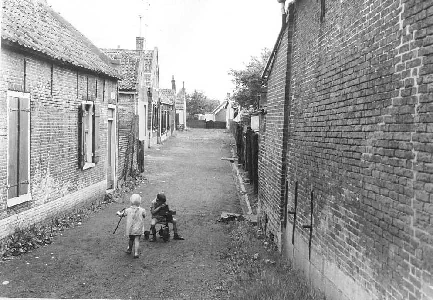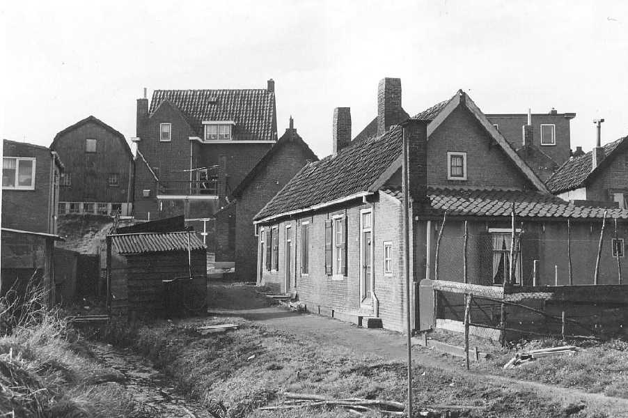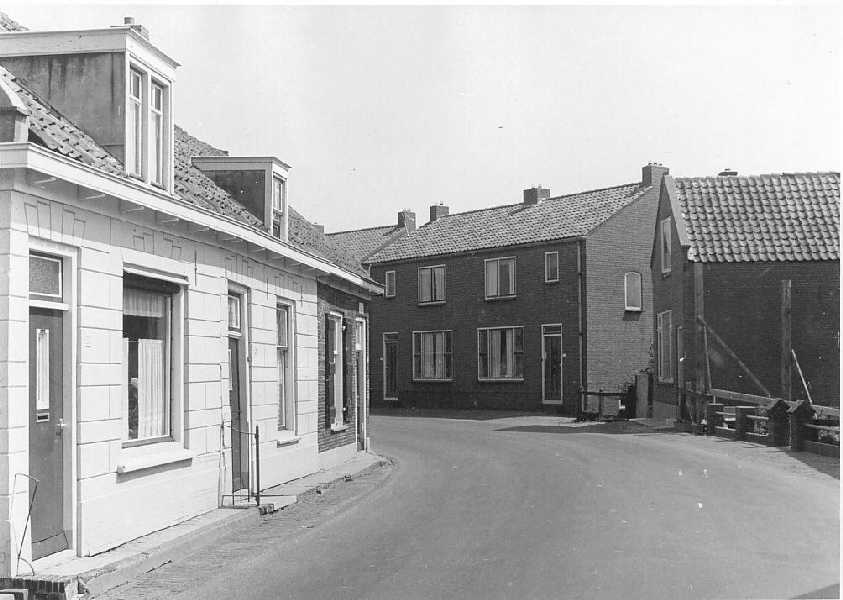 Rechts woonde de fam. de Koning. In de nieuwbouwhuizen woonde rechts fam. Bas de Haas, links fam. Alblas. In de witte woningen rechts Kees Loomeijer en Trui Loomeijer Hartog. Links Keesje van der Vlies, huisschilder.