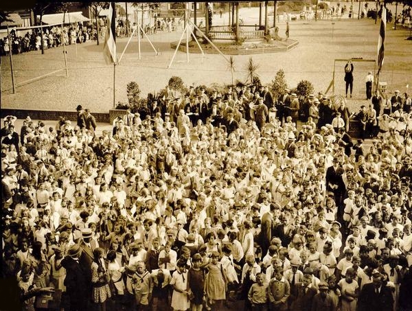 Koninginnedagfeest op het Dr.Langeveldplein met turnoefeningen