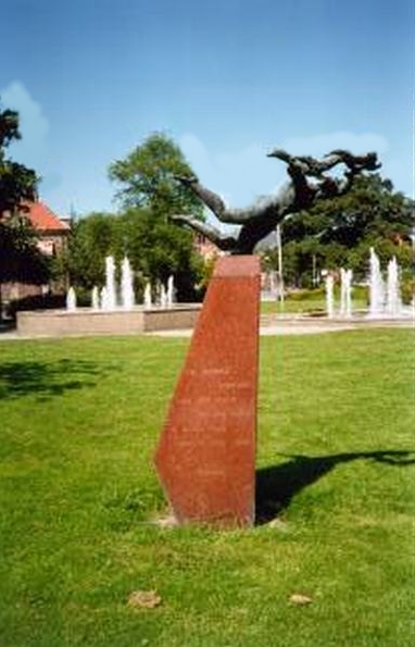 Kunstwerk in het plantsoen voor het gemeentehuis aan het Dr. Langeveldplein