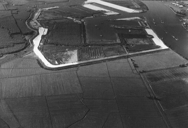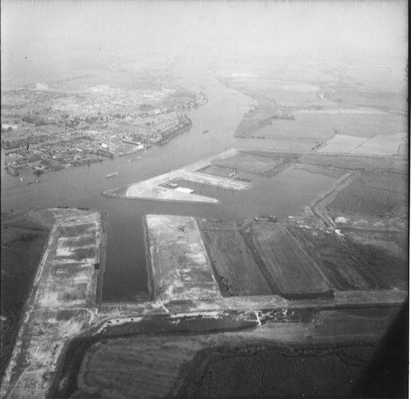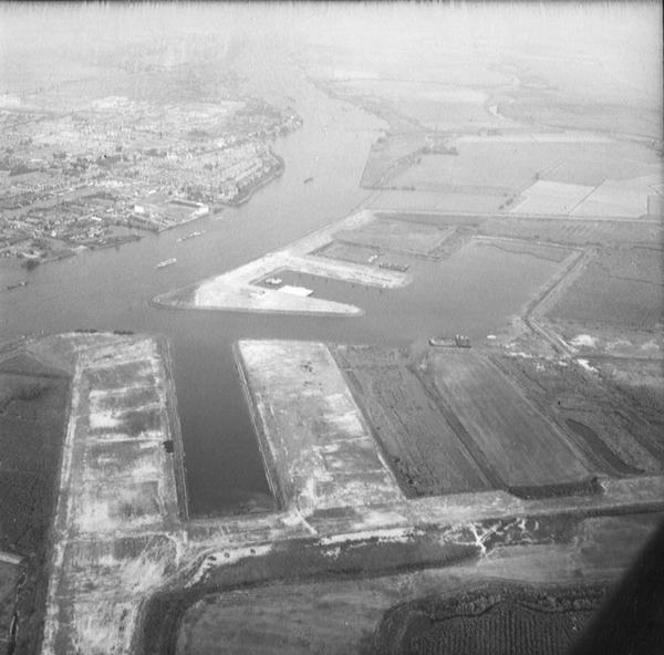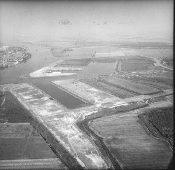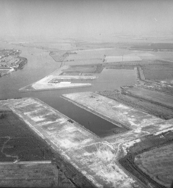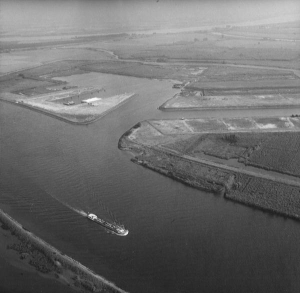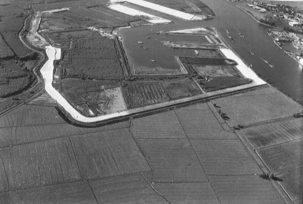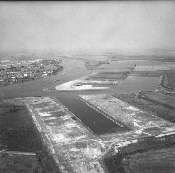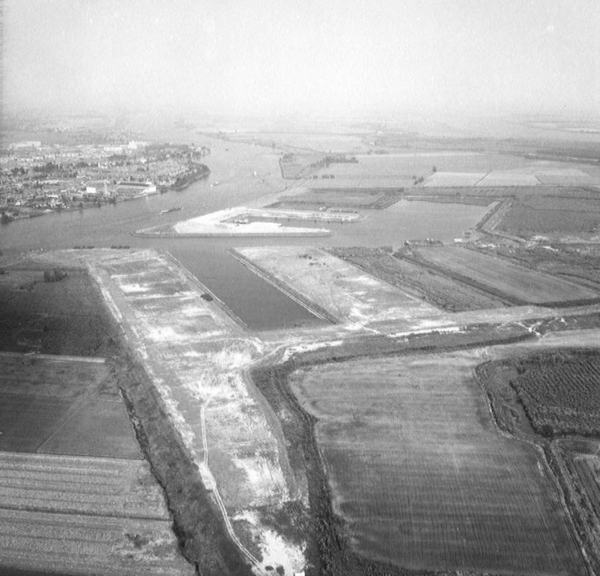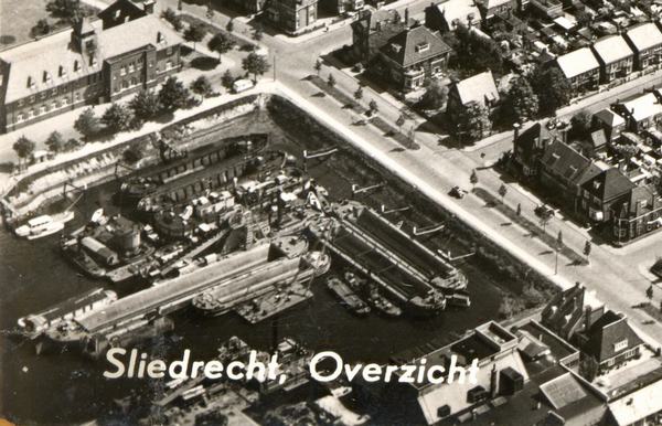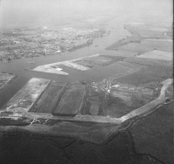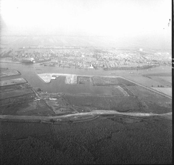 Luchtfoto van de overzijde van de Merwede tegenover het havengebied van Sliedrec ht
