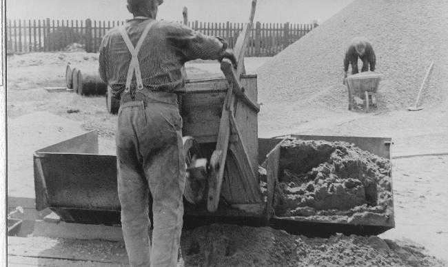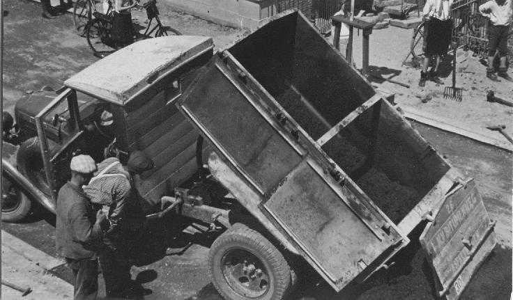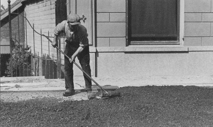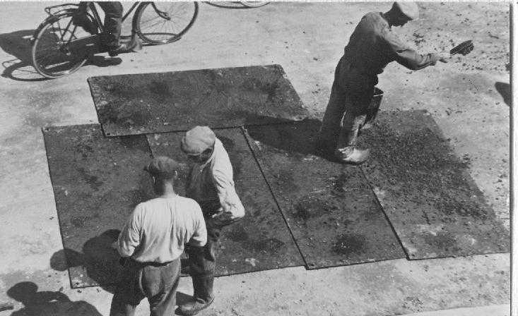 Dijkverharding 1947 asfaltering. Deze foto is genomen in de Industrieweg.