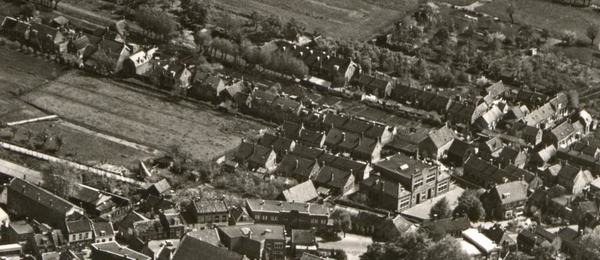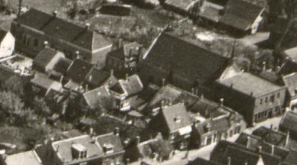 Luchtfoto van de omgeving van de Gereformeerde Kerk met op de achtergrond een deel van de vroegere school 3