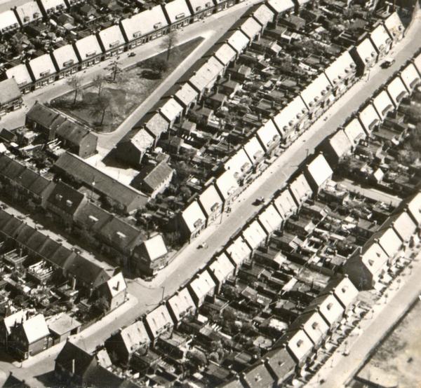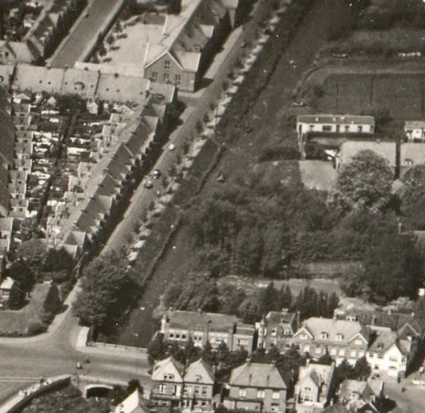 Luchtfoto van de omgeving van de vroegere Ambachtsschool, eerder lagere school nummer 3
