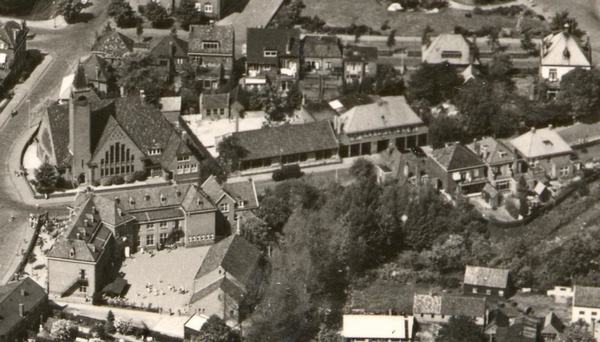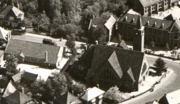 Luchtfoto van de omgeving van het vroegere Hakkenesseschool ofwel Gereformeerdeschool