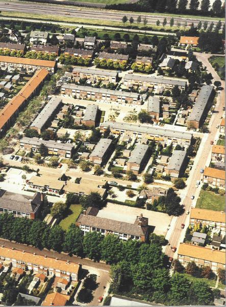 Luchtfoto omgeving Thorbeckelaan nabij de vroegere Jan Ligthartschool