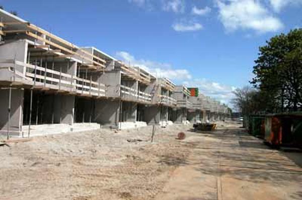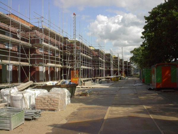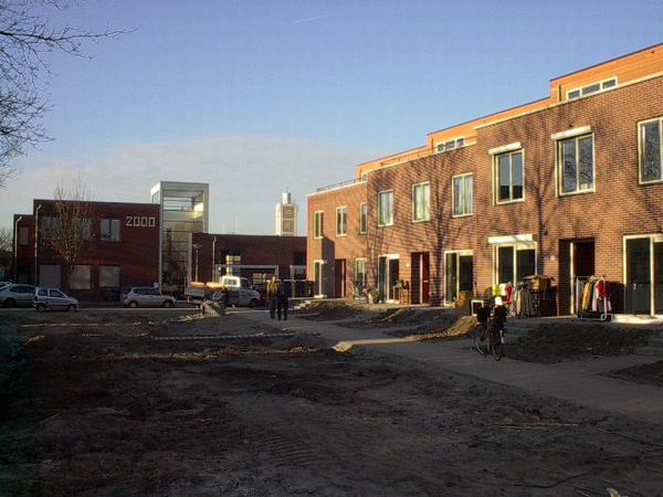 De nieuwe woningen aan de Middeldiepstraat. Deze zijn gebouwd op het gedempte Middeldiep.