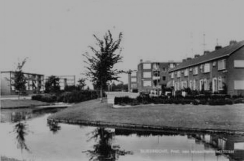 Omgeving Nachtegaallaan. Rechts onder schoolplein vroegere Boerhaaveschool en daarnaast kleuterschool Klimop.